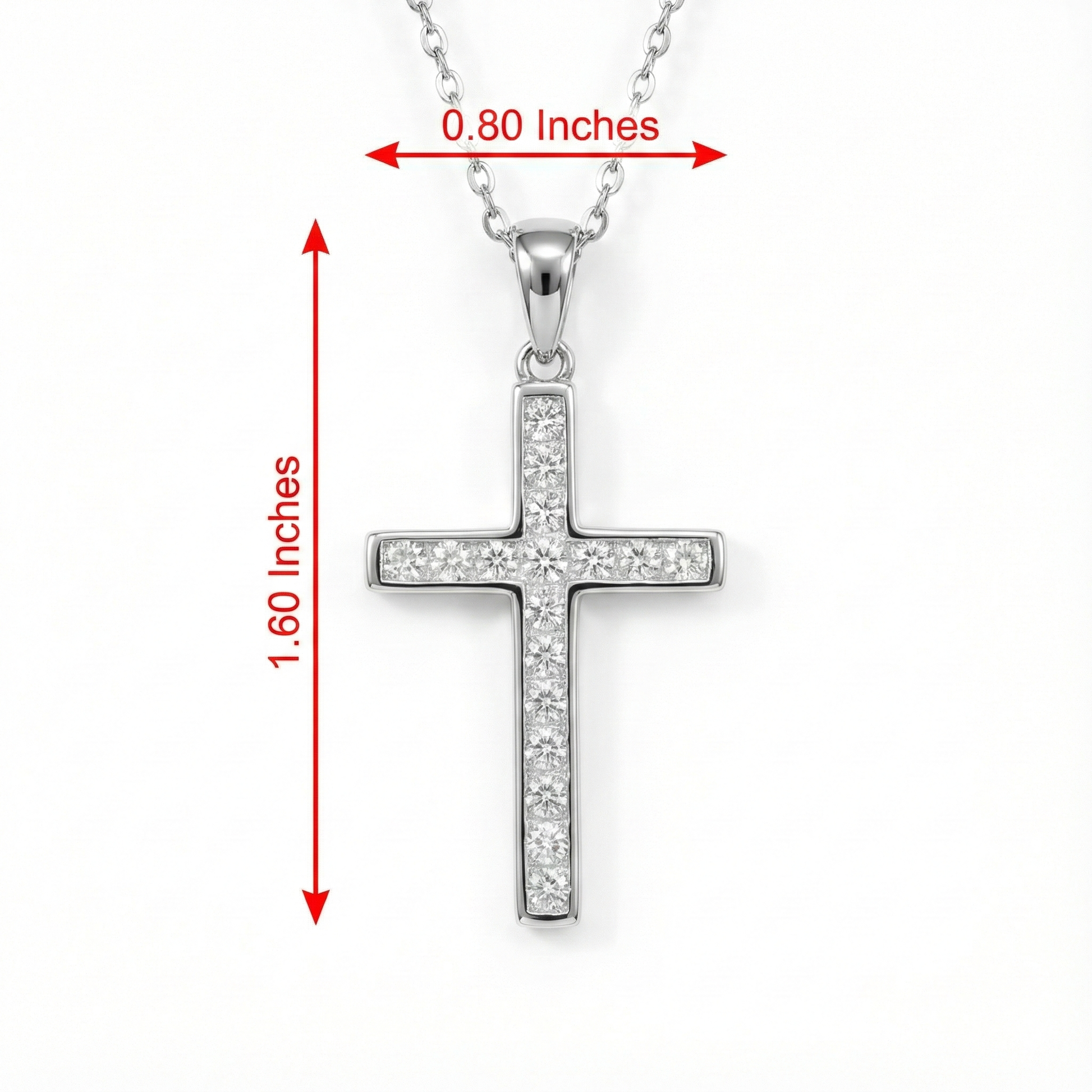 0.580 ct Moissanite Cross Pendant - Princess Cut Tennis Necklace