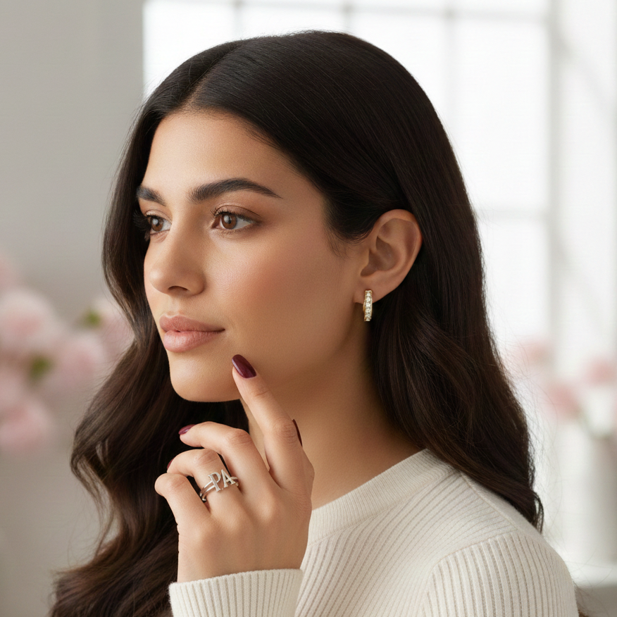 Celebrate your identity with this Custom Letter Ring, crafted in solid gold with a clean, elegant alphabet design. Featuring a minimalist double-band base and bold initial letters, this ring is perfect for everyday wear or as a meaningful gift.