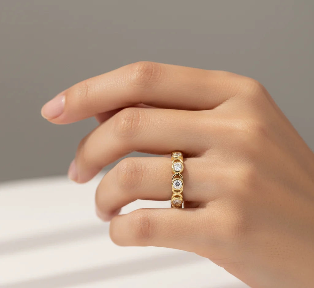 14K Gold Bezel Lab Diamond Eternity Ring