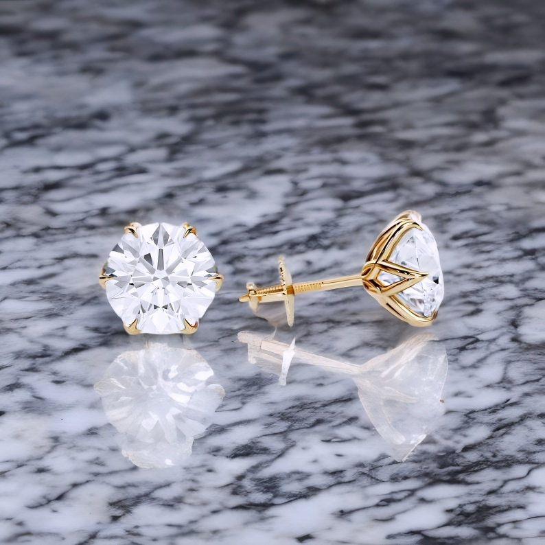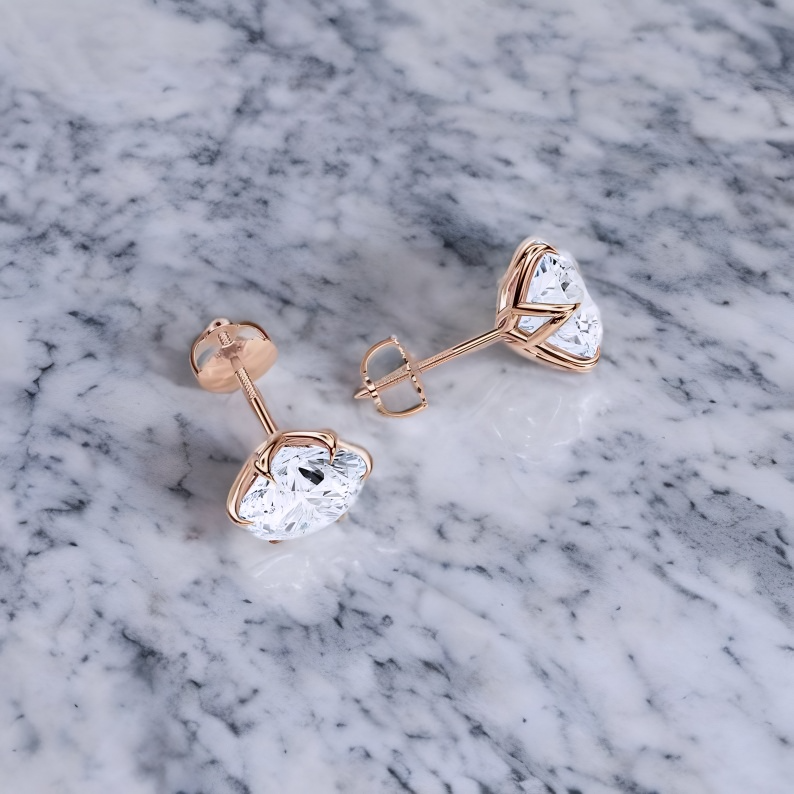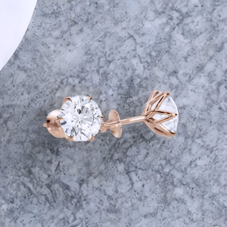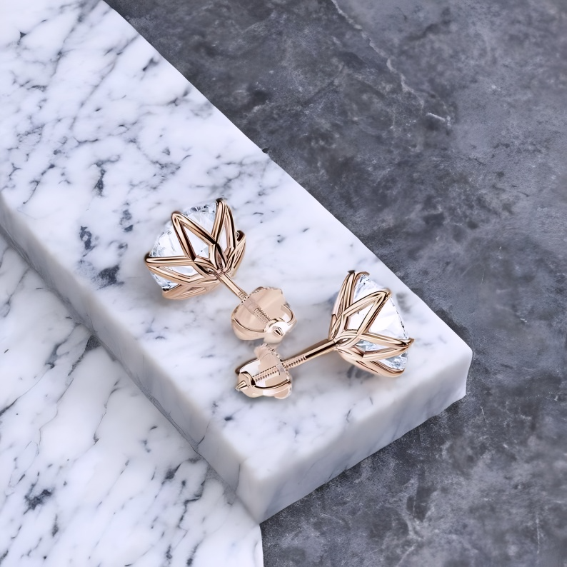 Gracefully inspired by the elegance of blooming flowers, these Lotus Stud Earrings showcase a dazzling 3 Carat lab-grown diamond in each ear, securely nestled in a delicate six-prong floral setting. Crafted in warm and feminine 14K Rose Gold, they feature secure screw-back posts for everyday comfort and peace of mind.