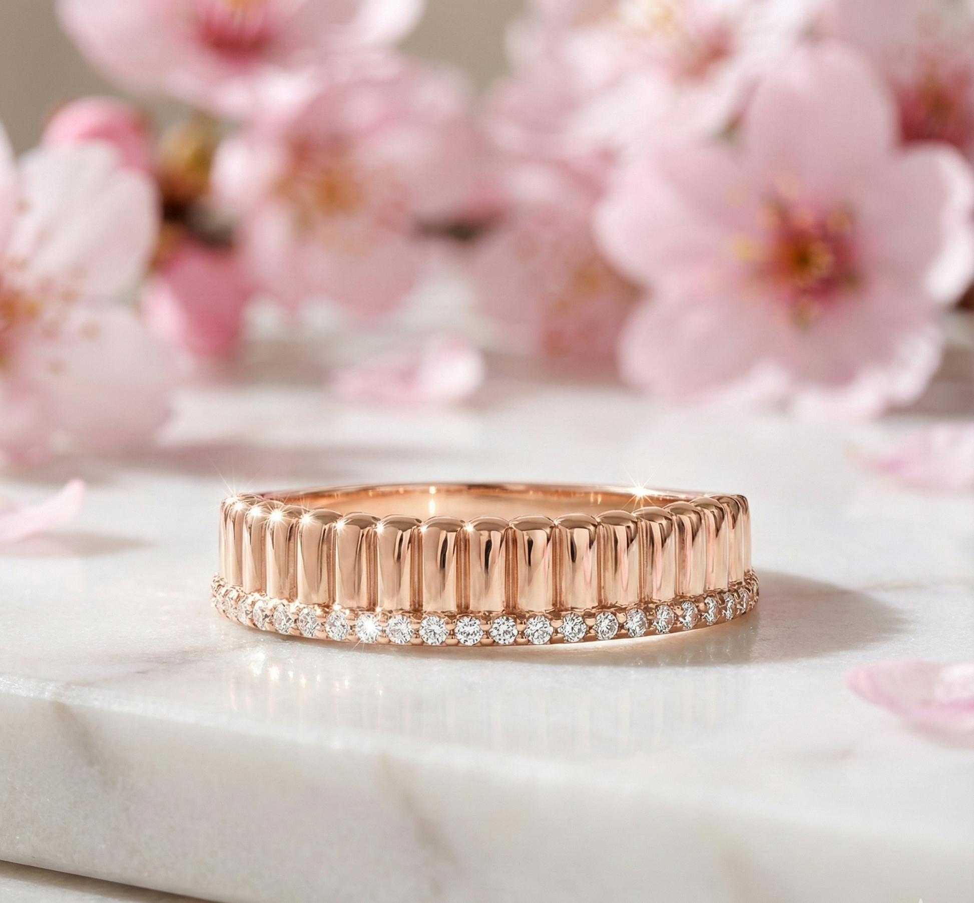Moissanite Wedding Band • 14K Gold Diamond Alternative Band • Ribbed Gold Ring with Pave Moissanite • Minimalist Luxury Ring✨ Moissanite Gold Band – Modern Texture with Timeless Sparkle