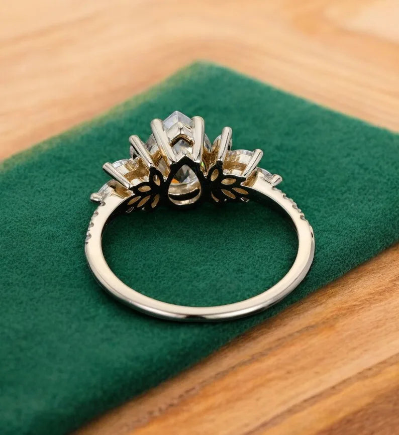Celebrate your love story with this Pear Shaped Lab Grown Diamond Engagement Ring, blending vintage elegance with a modern ethical touch. The pear-cut center stone sparkles with brilliance and is surrounded by a halo of lab diamonds, creating a timeless floral-inspired silhouette.