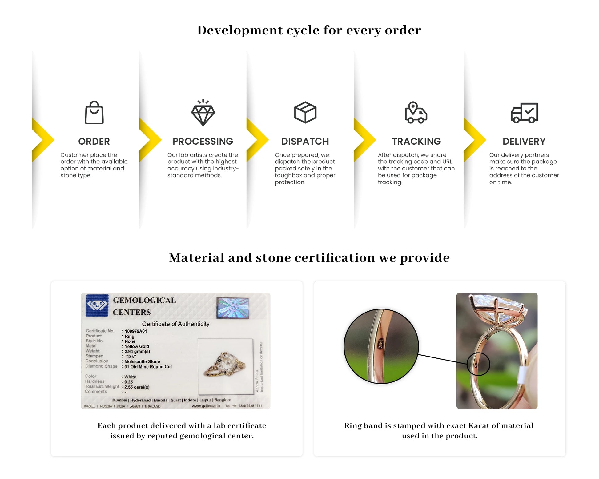 Moissanite diamond or stone is lab-made stone that contains a very-close shine like the natural diamond. Read more about moissanite here.