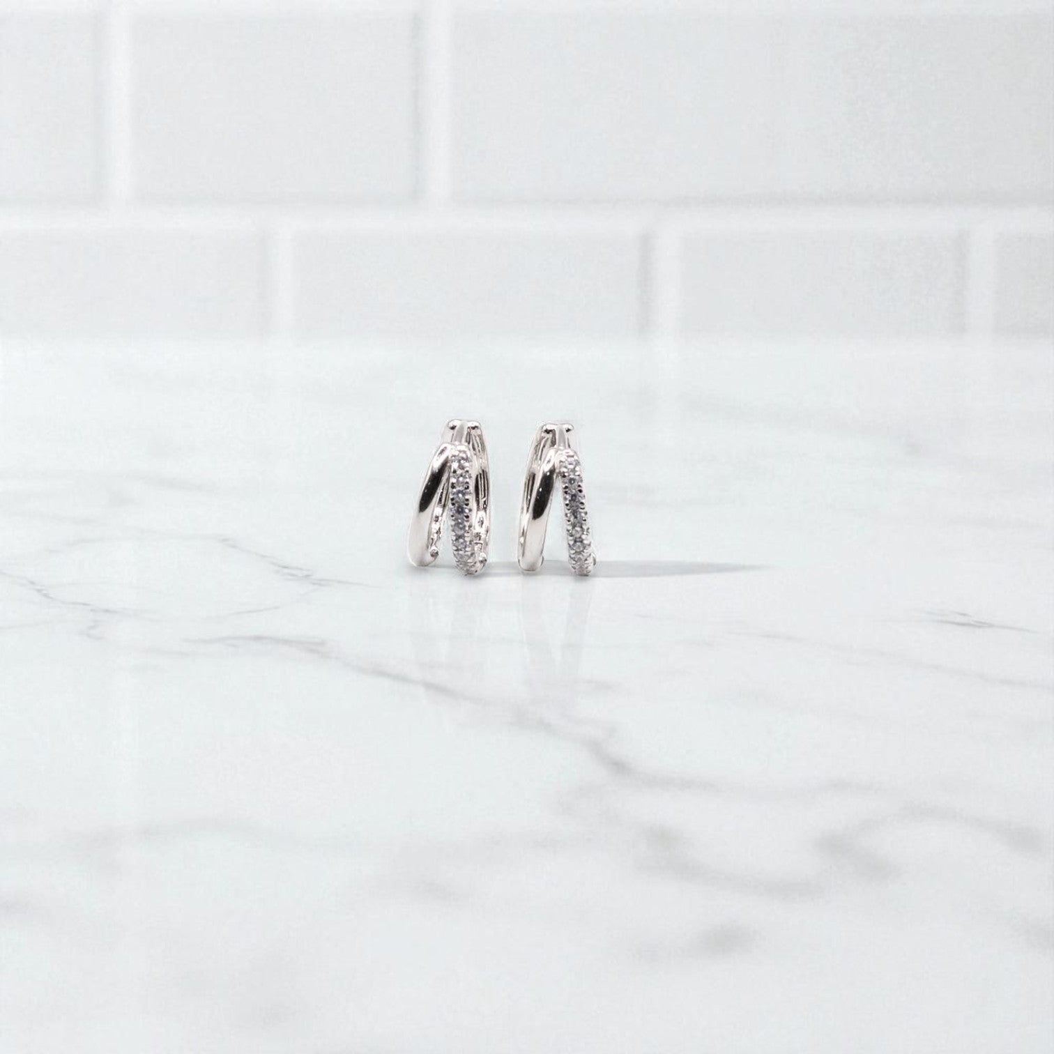 Crafted in solid gold, these hoops feature a chic crossover design with one band paved in brilliant lab grown diamonds and the other in smooth polished goldβ€”symbolizing the harmony of modern elegance and sustainable luxury.