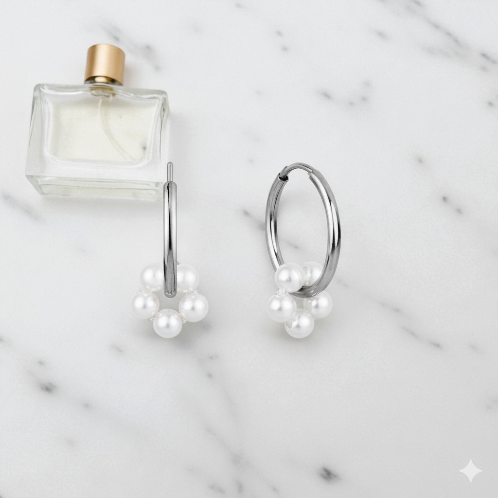 Add a touch of elegance to your style with these pearl hoop earrings, featuring a cluster of luminous pearls delicately set on sleek gold hoops. The timeless combination of gold and pearls creates a chic yet playful look, perfect for both casual and formal occasions.