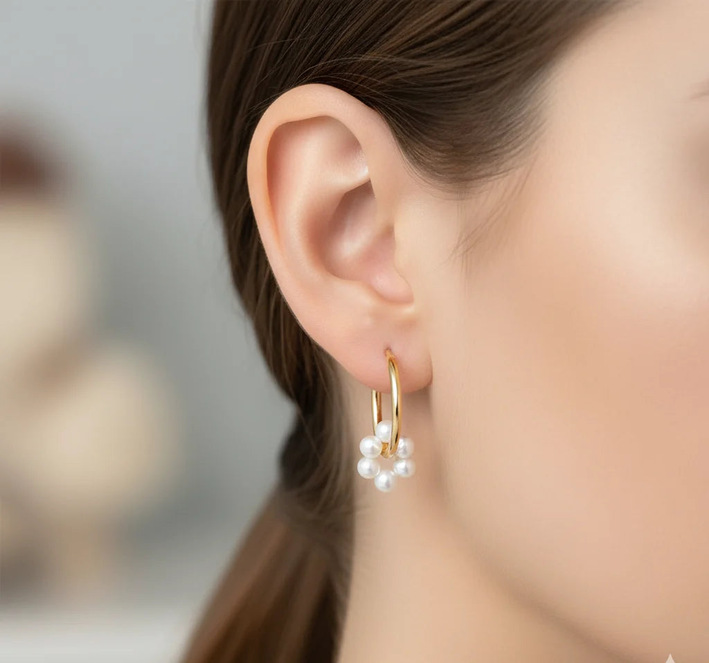 Design: Gold Hoop Earrings with Pearl Cluster