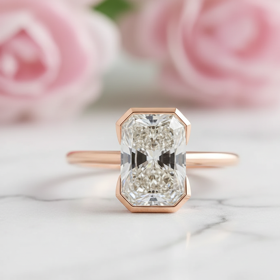 Moissanite diamond or stone is lab-made stone that contains a very-close shine like the natural diamond. Read more about moissanite here.