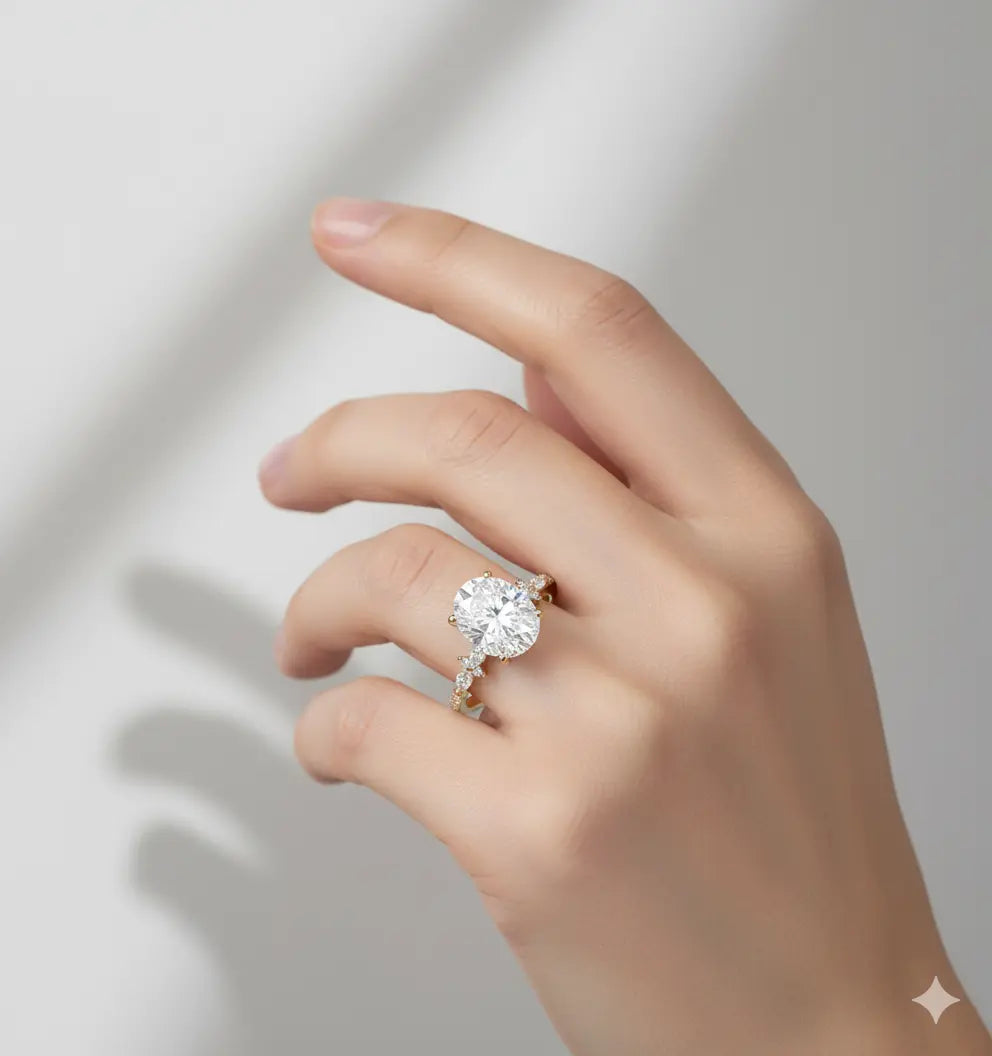 Moissanite diamond or stone is lab-made stone that contains a very-close shine like the natural diamond. Read more about moissanite here.
